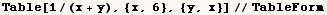 The iterator in Table can be omitted if it isn't used. The next line makes a
