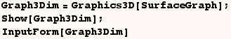 In the next cell we simply evaluate Graphics3D[SurfaceGraph] to change the above SurfaceGraphics to Graphics3D. This cell also shows the SurfaceGraphics and returns the underlying expression of the Graphics3D. The result we get back has the form